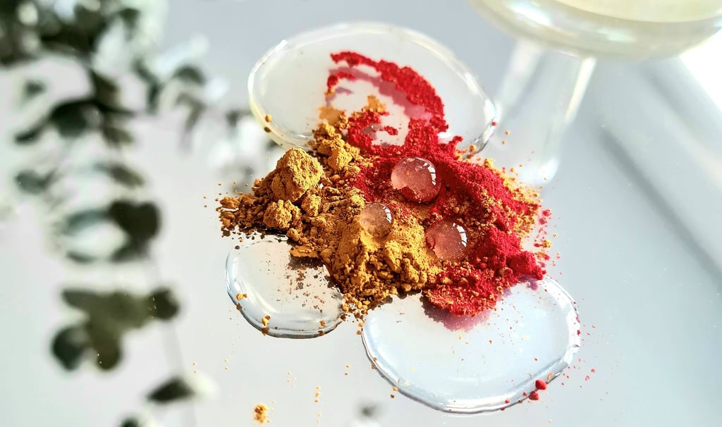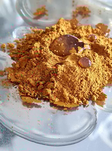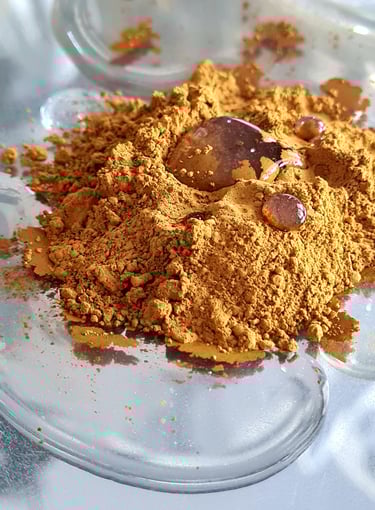 Tout commence par le choix des pigments, qui doivent être de haute qualité et bien broyés pour obtenir des couleurs vibrantes et durables. Ils s'achètent dans les magasins d'arts créatifs ou chez des vendeurs de pigments. On peut trouver des pigments minéraux, organiques ou métalliques.