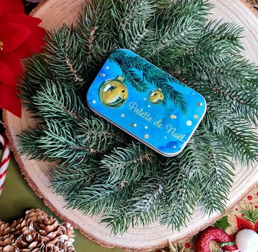 Une nouvelle palette d'aquarelles composée de 6 nouvelles couleurs : Neige, Chocolat, Sapin, Houx, Paillettes et Argent.