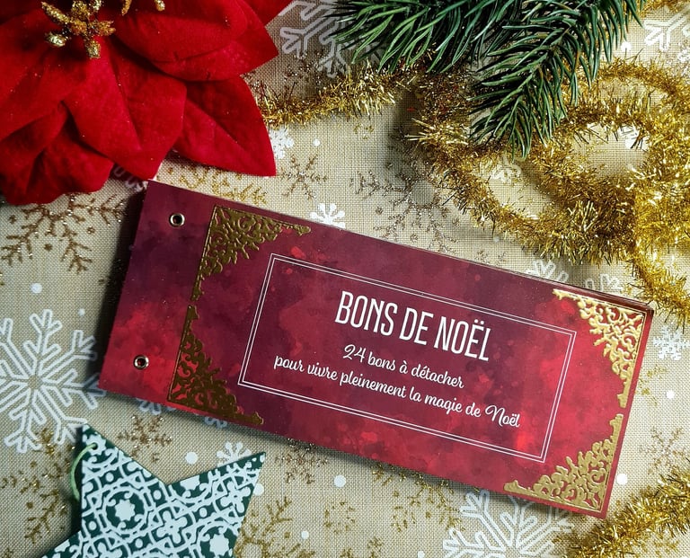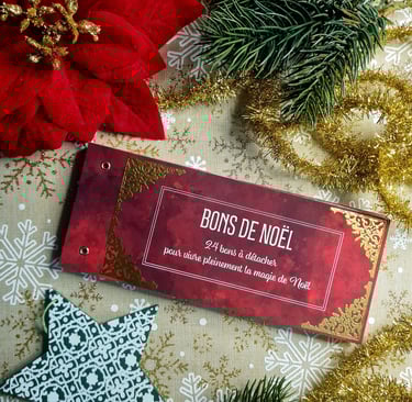Enfin, on termine cette collection avec un produit qui me tenait vraiment à cœur : un carnet de bons de Noël. Ce carnet comporte 24 bons de Noël à détacher (comme un carnet de chèque) et qui illumineront les journées des enfants tout le mois de décembre. A offrir chaque jour (comme un calendrier de l'avent), vous y trouverez, par exemples, un bon pour regarder un film de Noël, un bon pour lire une histoire de Noël ou encore un bon pour une soirée jeu en famille. J'ai essayé de regrouper tout ce que j'adorais faire lorsque j'étais enfant et que j'attendais avec impatience. Je vais pouvoir le proposer à Aaron cette année et j'espère voir des étoiles dans ses yeux.