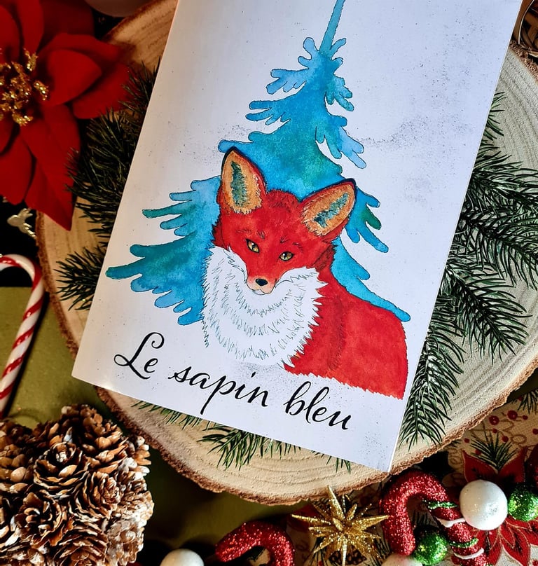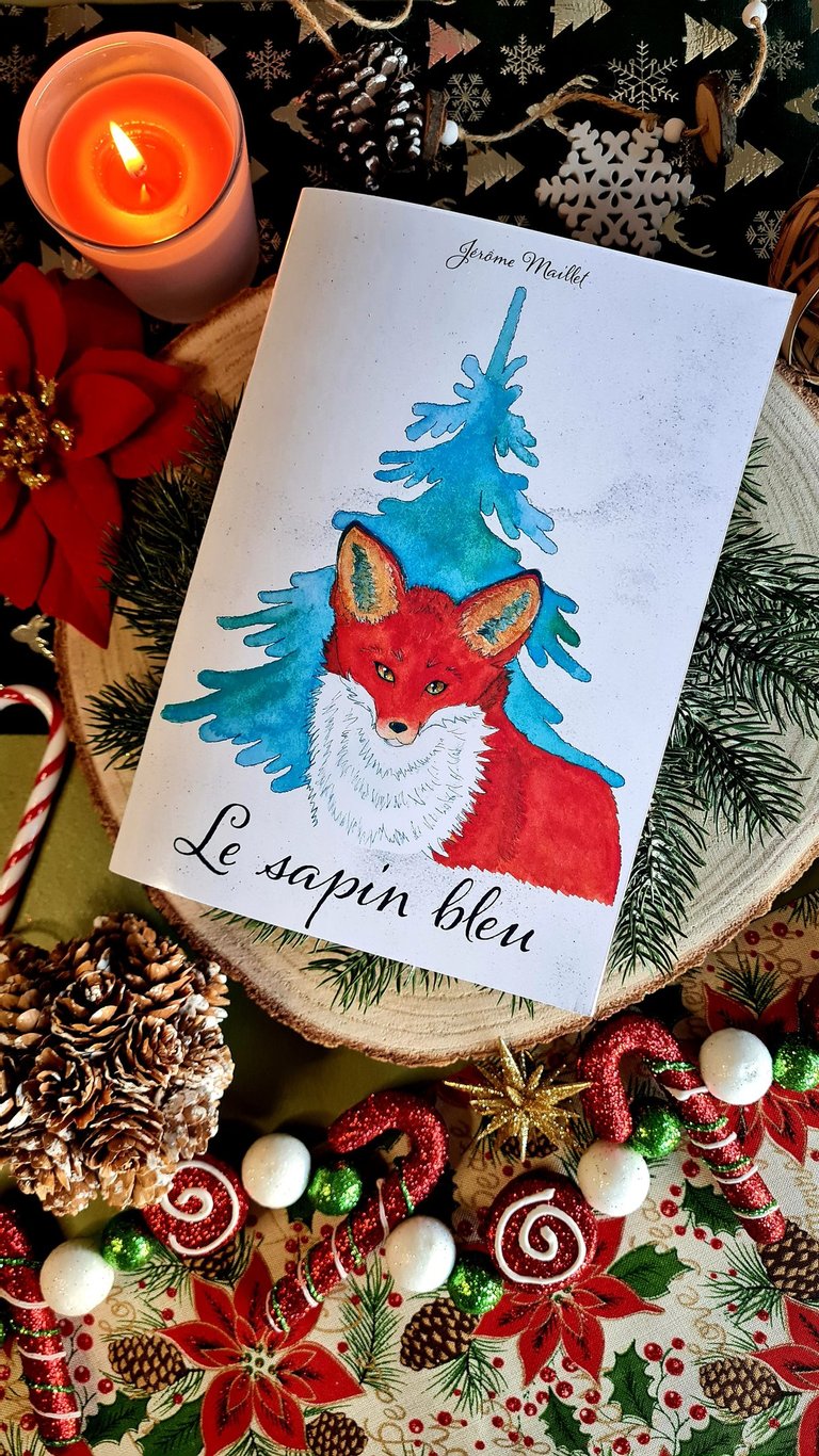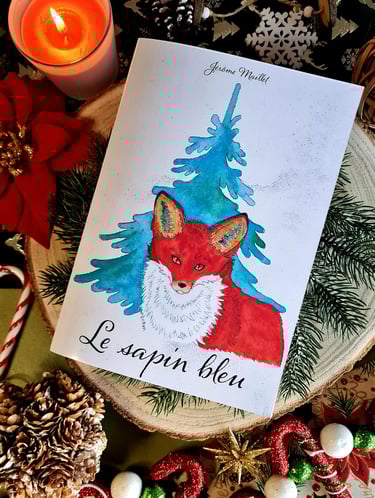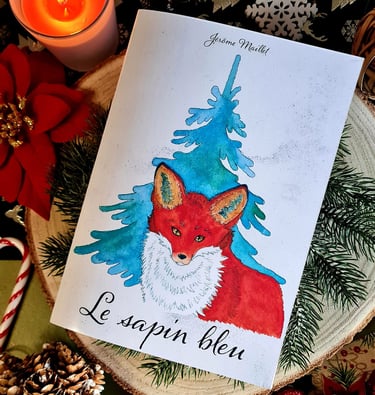 Un nouveau livre : le sapin bleu. C'est l'histoire d'un renard qui rencontre un petit souriceau égaré et qui va l'aider à retrouver son chemin. Les illustrations ont été réalisées entièrement par Jérôme, je suis très fière de lui et du rendu final.