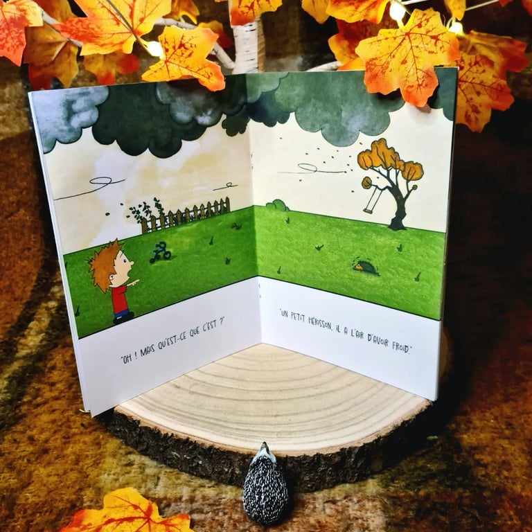 Résumé : "L'orage arrive. Jérémy aperçoit un petit hérisson et décide de le mettre à l'abri". Dès 2 ans.