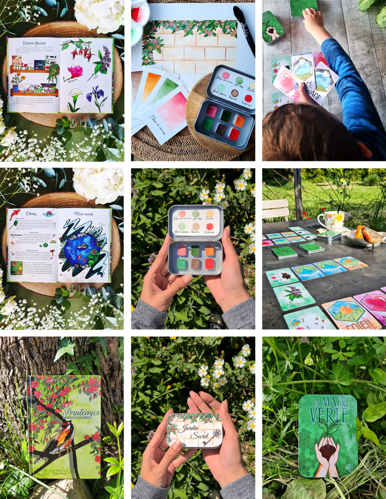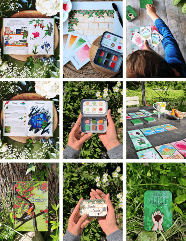 À deux, nous écrivons, illustrons et imprimons des livres et des jeux de cartes.
